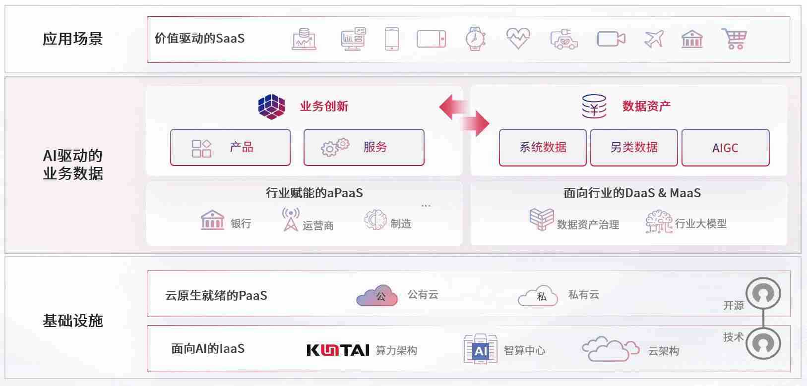 数字时代,,,,围绕企业数字化转型的关键要素,,,,3223.bet数码开创性的提出数云融合战略和技术体系框架,,,,着力在云原生、、数字原生、、AI原生和信创产业上架构产品和服务能力,,为处在不同数字化转型阶段的快消零售、、汽车、、、、金融、、医疗、、、政企、、、、教育、、、运营商等行业客户提供泛在的敏捷IT能力和融合的数据驱动能力,,构建跨界融合创新的数字业务场景和新业务模式,,,,助力企业级客户建立面向未来的核心能力和竞争优势,,,全面推动社会的数字化、、、智能化转型升级。。